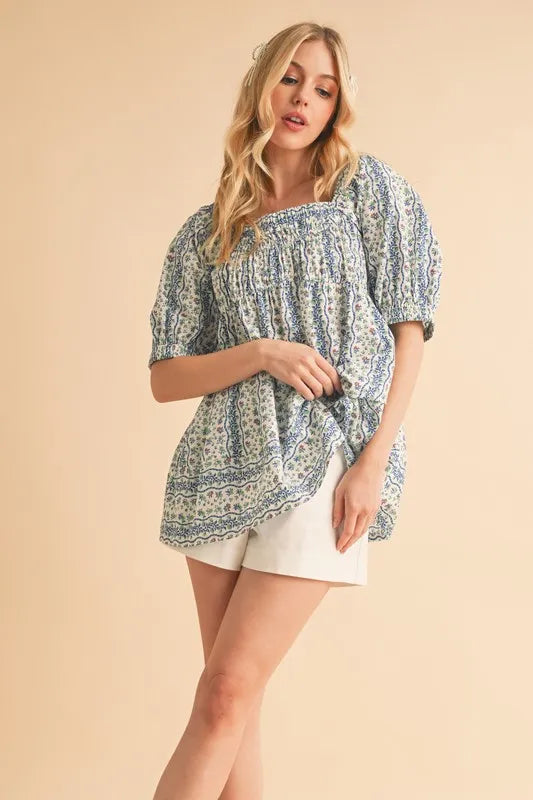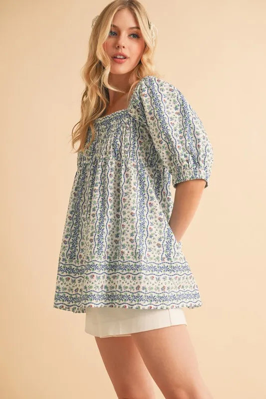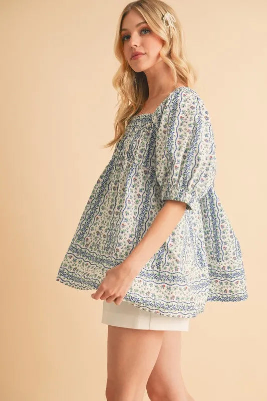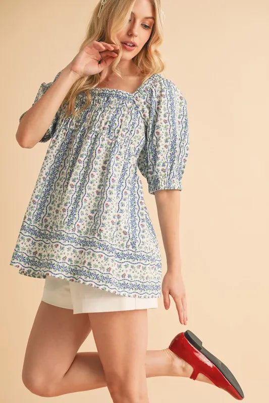Floral Babydoll Top With Short Sleeves For Flattering Fit