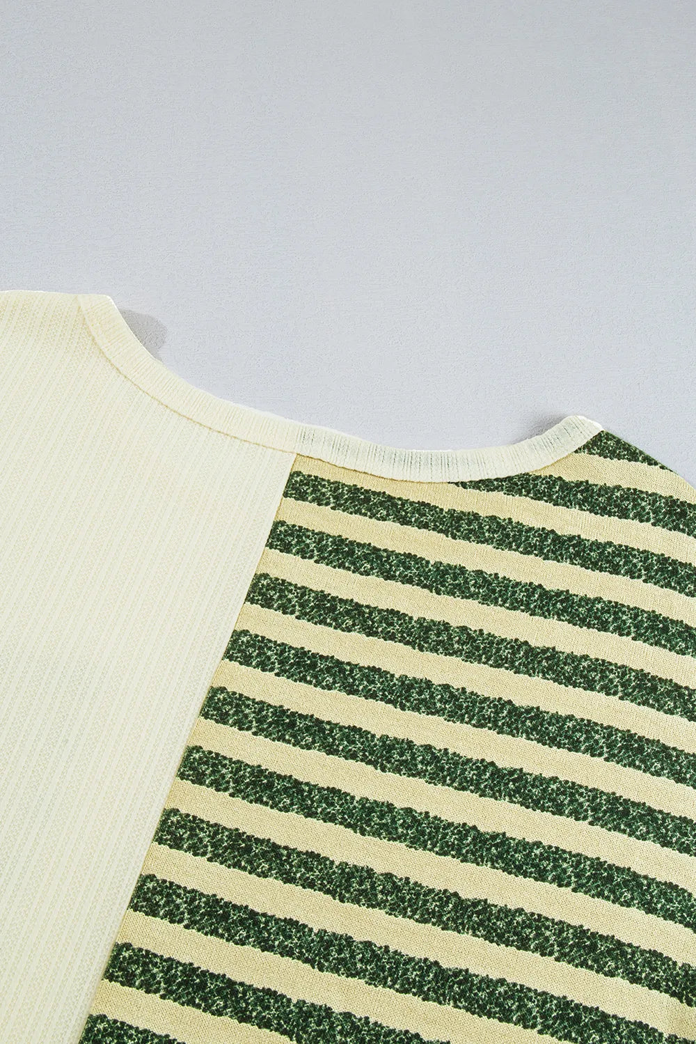 Striped Round Neck Top With Pockets For Everyday Comfort